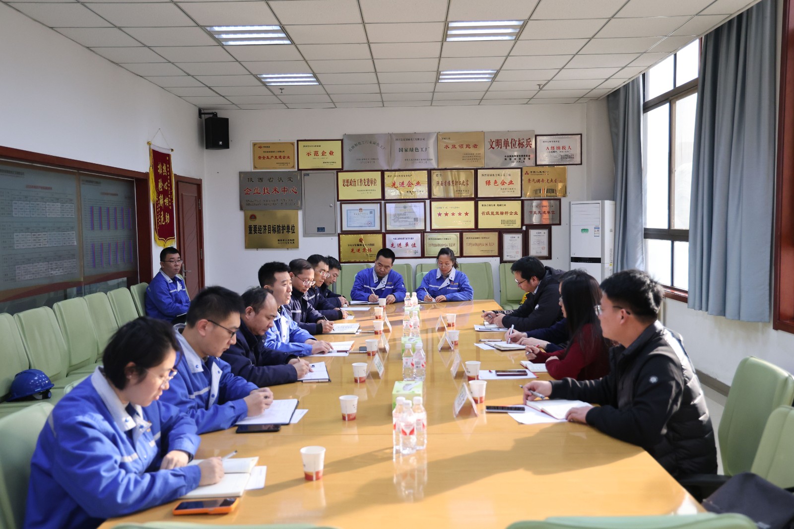1月22日,陕西省塑料工业协会执行会长牟卫强、秘书长卢璐及会员单位代表一行到金泰氯碱开展技术交流座谈。会上,双方围绕化工行业节能减排、绿色低碳转型、系统化节水等先进适用技术,分享了创新成果与典型实践案例,并就共同关注的技术难题、行业发展趋势及合作机遇,开展了深入、务实的讨论。(李辽东)